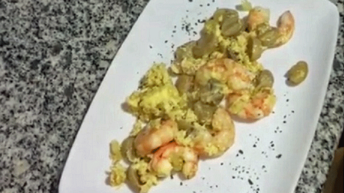 Revuelto de champiñones con langostinos